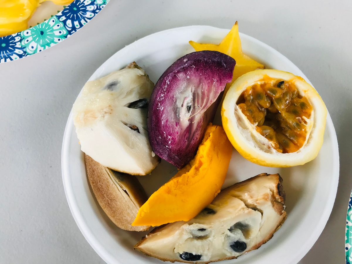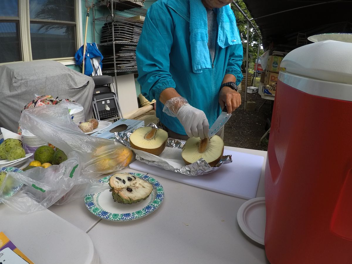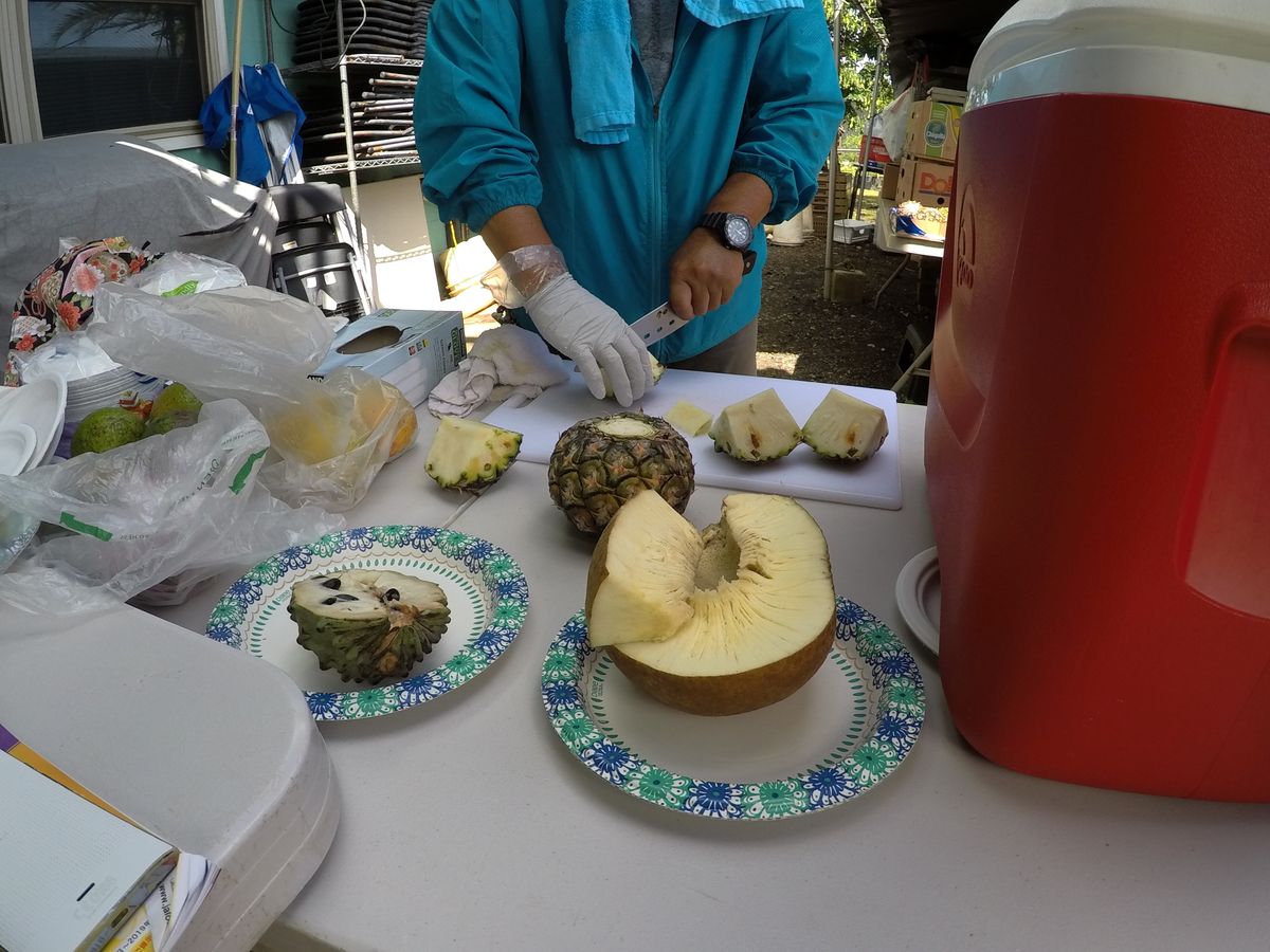 テレビで紹介された果樹園ツアーに参加しました。11月末は果物が多く実っている時期ではないとのことでした。少しリサーチ不足でしたが、ガイドさんがその中でも一生懸命探していただき直接木から採取した果物を3種類くらい食べることができました。そのあと私たちの楽しみにしていた果物の試食会です。10種類くらいの果物を美味しくいただきました。社長からは、よく食べ放題と口コミで書かれていますが違いますよと言われていましたが、食べた果物で気に入ったものはお替りも食べさせていただき実質食べ放題といえるでしょう。毎年ハワイに行っていますが、一度経験すべきツアーだと思います。