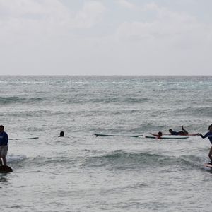 数あるサーフィンスクールの中でも、会場であるビーチの立地と、器具の安全性などを考えて、ここが一番のお勧めだと思います。 私の参加日はちょうどハワイの祝日にあたっていたこともあり、ビーチはキャンプのなどしているロコで多少は混んでいましたが、普段はほぼプライベートビーチ感覚らしく、人がいなく、存分に練習できるそうです。 器具も他のスクールではなかなか貸してくれない、リーフブーツ(海底のサンゴで怪我をしないように保護してくれる靴)も貸してくれるし、サーフボード自体もフィンがゴム製になっていたりと、怪我なくサーフィンできるような配慮がいたるところに見られます。また、私の参加回は日本人のみ10人くらい(約男女半々で20代~30代)の参加者でしたが、ほとんど全員が時間の差こそあれ、みな初心者でしたが、その日のうちにボードに立てるようになりました! 特に日本人インストラクターのKAZUさんが丁寧にポイントを教えてくれますよ! ありがとうございました!
