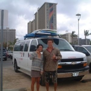 私は以前にいくつかのサーフィンのレッスンを受けたことがありますが、この会社では初めてでした。私のボーイフレンドはサーフィンをしたことがありませんでした。ドライバーにほぼ時間通りに迎えに来てもらい、サーフショップに運ばれ、私たちの先生であるイワンに簡単に紹介されました。イワンはオアフに20年以上住んでいる素敵な男性です。彼は私たちにギアを渡し、私たちはビーチまで2つの大きなボードを運びました。その後、約15分間砂浜でレッスンを受け、海へ出ました!