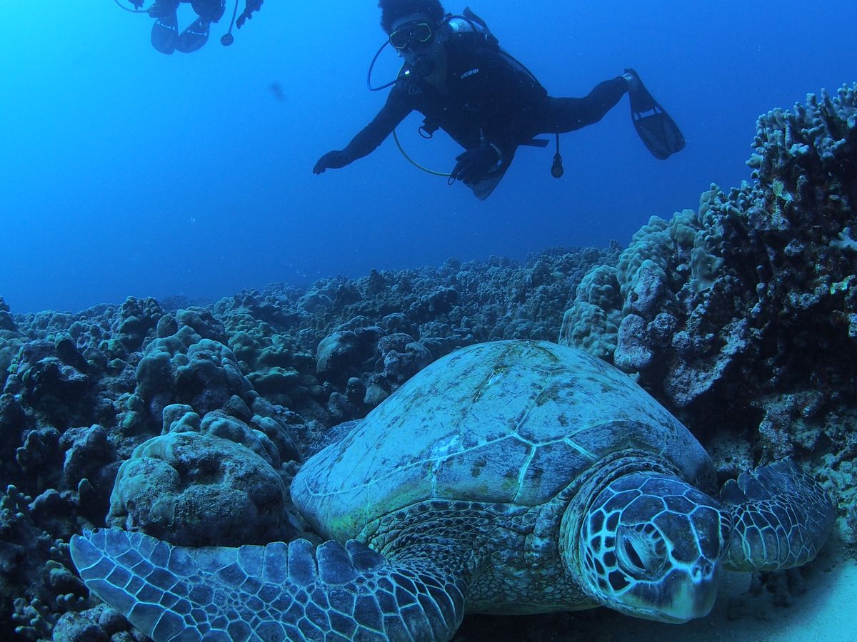 ホヌを海面や海底付近で見ることができ