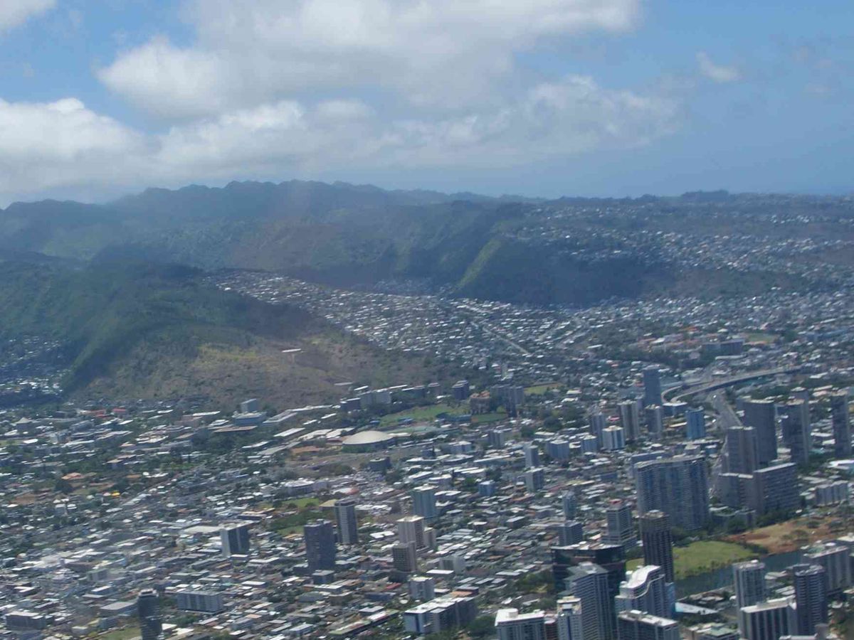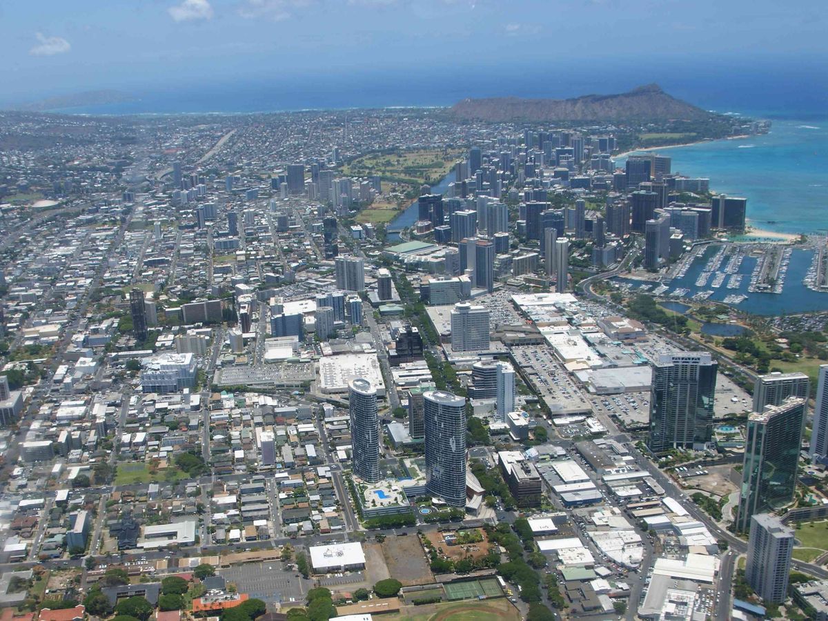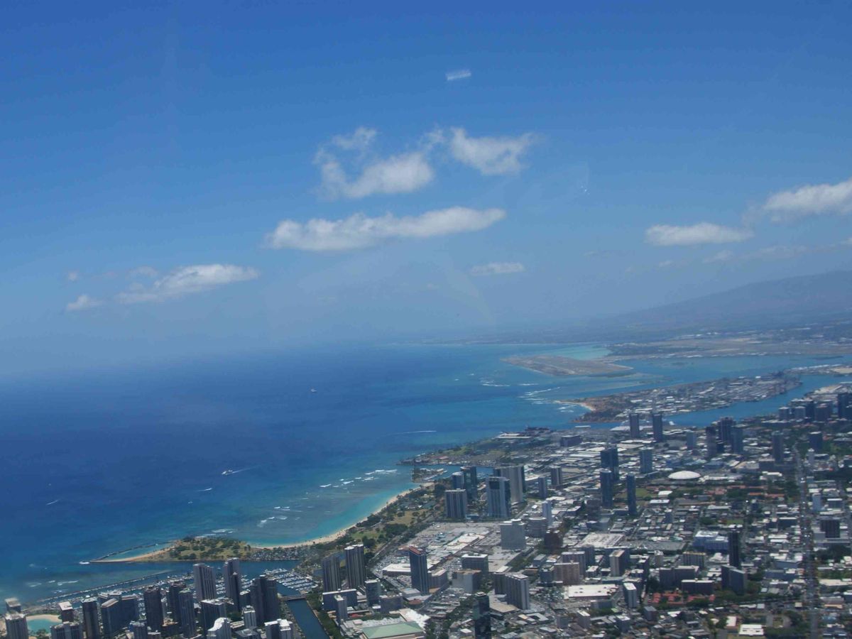 離陸して1、2分経った時点で操縦を代わってくれました。自分の操縦の番になってから間もなく左手にワイキキビーチが見え、ダイヤモンドヘッドのすぐ脇を通り過ぎ、海岸線に沿ってハナウマ湾のあたりまで行って次は内陸の方を通ってパールハーバー上空を通って帰ってきました。この間きっちり30分でした。