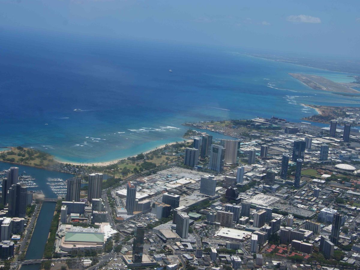 内容はホノルル空港にあるオフショアフライトスクールの事務所についてすぐに飛行ルートの説明があり、そのままセスナに乗った状態で操縦方法と緊急時の脱出方法を教えていただき、出発といった感じです。この間約10分くらいだったと思います。