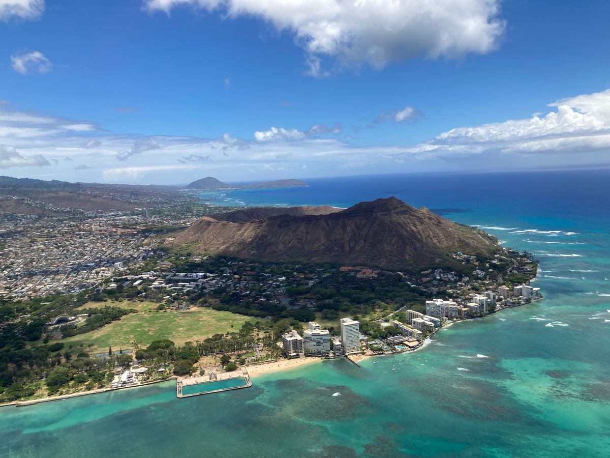 ダイヤモンドヘッドをはじめとする東海岸の名所を説明してもらいながら快適なフライトができました。