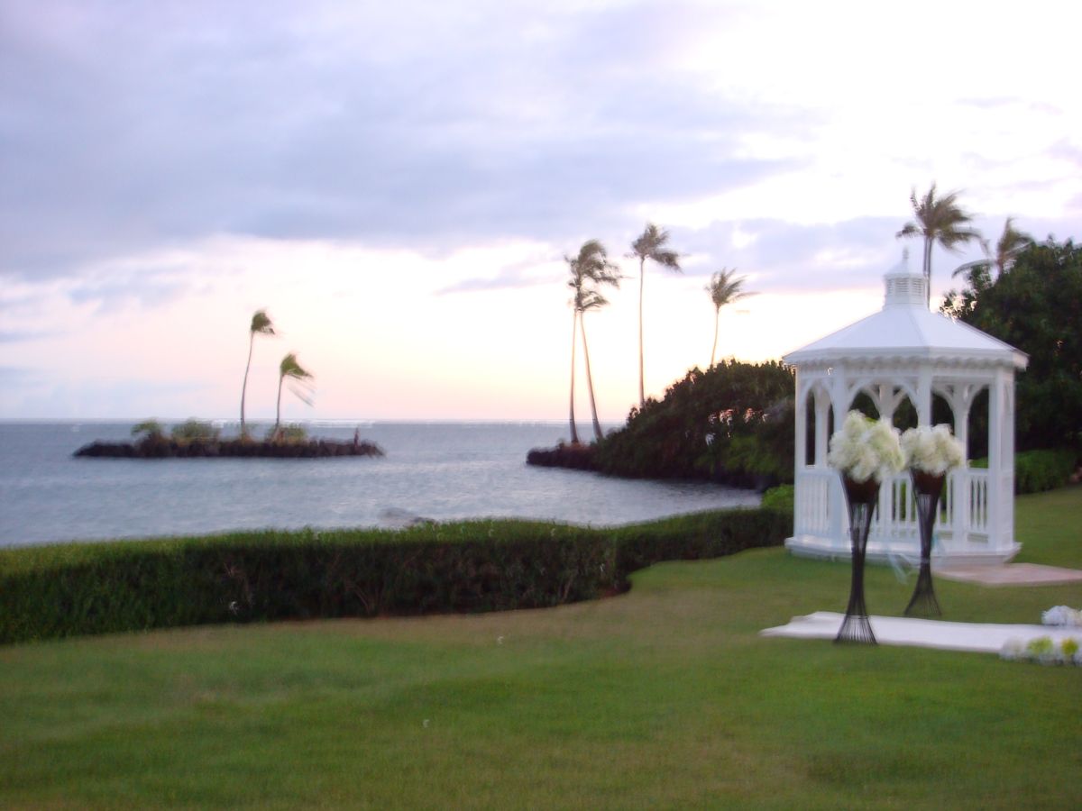 目の前はビーチ、隣のチャペルでは結婚式中・・・