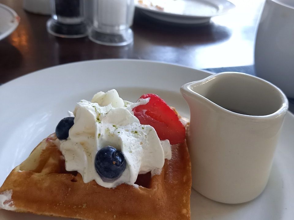 パンケーキとワッフルは、お願いすると席に持ってきてもらえます。オムレツも、好きな具を伝えると、目の前で焼いてもらえます。