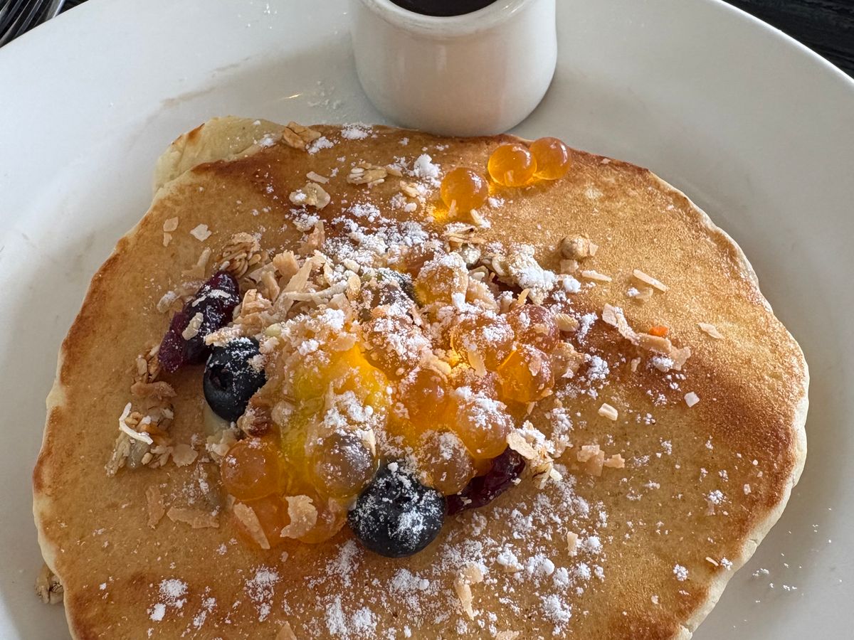 2人の場合、パンケーキともう一品別々なメニューを注文して分けあうのが、おすすめです。(少しだけおしゃれして。)