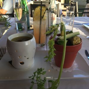 娘と二人で予約しました。コース内容を事前に別々のにして貰う様に手配してもらいましたが、、、現地で予約してるのにバウチャーをお店にメールしてほしいと言われました、、少しテンパりましたがメールするとすんなりお席に案内してくれました。その日暑くて室内にしましたがとても雰囲気がある素敵なお店でした!コースの内容もボリュームあって二人とも残しちゃいました