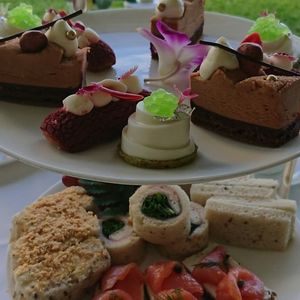 トロリーを使ってハレクラニに向かいました。15時の予約でしたが30分前に到着してしまいましたが、笑顔で案内される。12種類の紅茶を置かれ、香りをかいですきなものを選べました。最初にカヌレとスコーン。イチゴジャムクリームレモンクリームが運ばれてきて、そのあとにケーキにサンドイッチ!女子が喜ぶものばかりでした。ちゃんと説明もあり有難い。