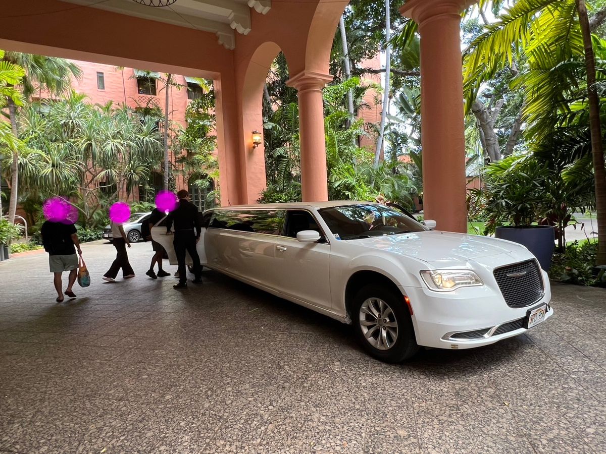 旅の最後のサプライズとして、ホテルから空港までリムジンを利用しました。昔ほど街中では見かけなくなりましたが、実際見ると真っ白な超ロングボディに圧倒され、宿泊先のピンクパレスとの映えがスゴイ。選んだリムジンは、安価なクルマを予約しましたが、クライスラー300Cなので、車種が旧いのは否めませんが、全員が驚き喜んでもらえました。貸切送迎を選ぶならお勧めです。