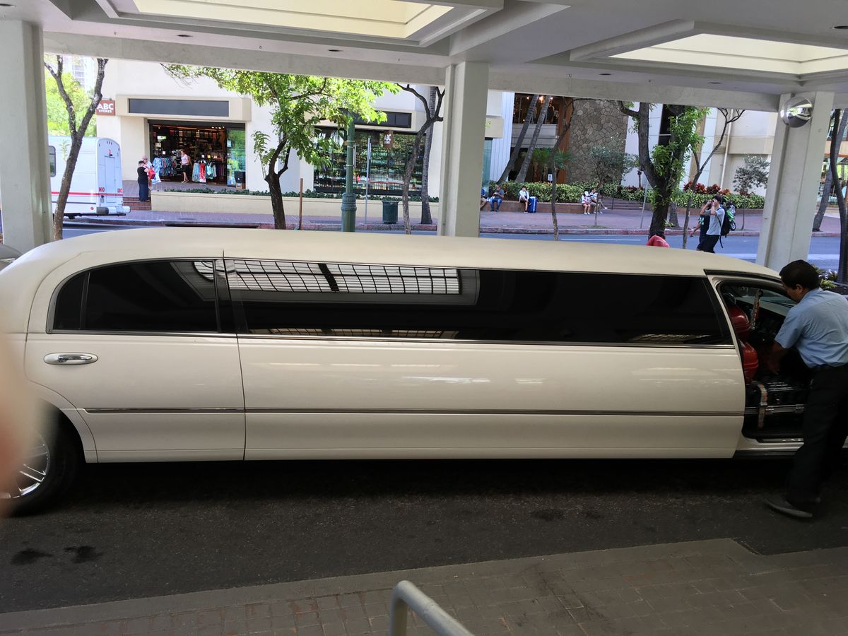 ホテルの前で送迎車を待っていると一台のリムジンが停まりました。まさかと思ったら、リムジンが送迎車でした。最初は驚きましたが、乗ってみるとテンションが上がり、ハワイ最後の日にリムジンに乗れていい思い出になりました。