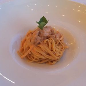 バーニャカウダのサラダから始まり、前菜のライスコロッケ(真っ黒いボールで食べるまで味も想像がつきません)、パスタもお皿が大きいのでちょっと少ないかなと見えましたが、いやいや結構な量で味もこってり、私は好きでした。デザートはジェラートアフォガートをチョイスしましたが、見た目は普通のアイスクリーム、がしかし食べてみるとソースとのマッチングは驚きの味、これだけでも食べてほしいです。