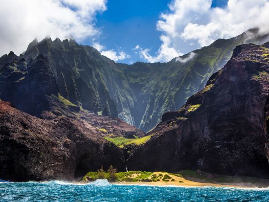 映画『ジュラシックパーク』のロケ地として有名な秘境の海岸「ナ・パリ・コースト」の絶景を船上から鑑賞