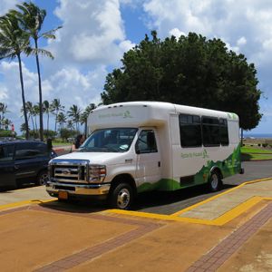 リフエ空港に到着しゲートを歩いていたらすぐに私をみつけて、シェルのレイをかけてくれました。スーツケースを受け取る場所とトイレを案内してくれた後、シャトルが待つ場所に行きました。なにもかもスムーズで、とても快適にカウアイ島の旅をスタートすることができました。レンタカーを使わずホテルまで移動する人には最適です。