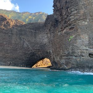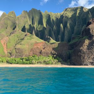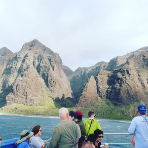 私の親友と私はカウアイを初めて訪れました。島の大部分を見て、文化や歴史について学べるいくつかのエクスカーションを選びたかったのです。このツアーは……素晴らしかったです。とても美しい海岸でした。ボートのクルーは素晴らしく、すべての乗客に非常に気を配っていました。彼らは島について非常に知識が豊富で、全体的に楽しい旅行にしてくれました。提供されたランチは美味しかったです。ナパリコーストの息をのむような景色に加えて、数百匹のスピナードルフィン、ウミガメ、アザラシ、禁じられた島を見て、シュノーケリングもしました。ただ一つ言えるのは、もし乗り物酔いしやすい方は、このツアーはお勧めできません。