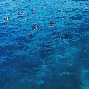 船で移動中は イルカの群と遭遇し、船を停めてウオッチングさせてもらえました。
