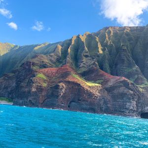 ナ・パリ・コーストは海から眺めると素晴らしい迫力でした。