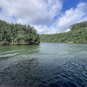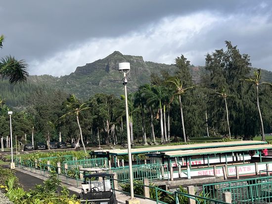 川沿いのボートライドでは、緑豊かな熱帯の風景の美しい眺めを楽しむことができ、ライブのハワイアンミュージックとフラが本格的でお祭りのような雰囲気を加えていました。
