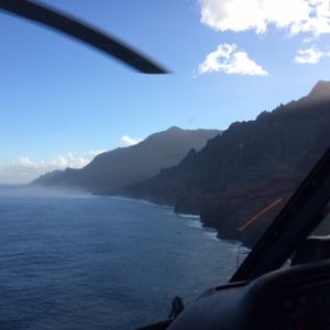 ハネムーンで利用しました。天気にも恵まれ、ナパリコーストの辺りは少し霞んでいましたが全体的に良く見えました。ここでしか出来ない素晴らしい体験だと思います。映画のワンシーンのようでした。2人乗りで申し込んだのですが、実際は6人乗りの前列二席でした。でもパイロットの隣で一番眺めが良い席になり満足でした。ヘリコプターに乗るのは初めてで、50分ほど?のフライトで途中から少々酔いました。元々乗り物酔いし易い体質ですが、比較的体力は必要なツアーかもしれません。(でも欧米人の年配の方も多く参加していました)また搭乗前の注意説明から上空での説明まで、全て英語でおこなわれます。