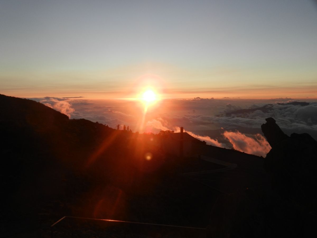 25年前にハレアカラに行ったことがあり、この時は日中でしたので今回初めてサンセットに行きました。日本とは違い入山の規制がかなり厳しくなっていて、自然を残すには大切なことだと感じました。天候は下界は雲海で、上空は雲ひとつない快晴、風も無風で、月齢がいわゆる三日月で、ガイドのヤマウチさんはサンセット&星空観察にはパーフェクトと言っておられました。午後7時のサンセットは、太陽が想像以上の速さで沈み、その後にグリーンフラッシュが訪れました。そして東の雲海には地球の丸さを感じる楕円形のアースシャドーがくっきり浮かびました。日が完全に沈んでからは、満天の星空でヤマウチさんが代表的な星座を教えてくれ、久しぶりにくっきりした南十字星を見ることができ、感傷に浸ることができました。また、GPSに接続していてリモコンで動く倍率の高い望遠鏡では、木星の縦の線や縦に並んだ4個の惑星がくっきり見え、他にもいろいろな流星群も見え、高度の低い位置の星は宝石のような輝きでうっとりとしました。マウイ島はゆったりとした時間が過ごせ、地球規模・宇宙規模の自然が体験でき、最高の旅行となりました。