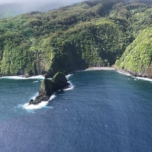 ハナに向かう途中、映画ジュラシックワールドで主人公達が恐竜の島イスラヌブラル島にヘリコプターで初めて上陸するシーンに登場する小さな恐竜の形をした島を通過、映画と同じヘリコプターからの眺めは迫力満点で感動しました!!