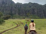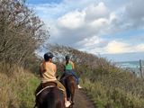 今まで乗馬をした事がなく、英語も話せないためとても不安でした。ですが、クアロアランチに着いてから英語で困ることは一切ありませんでした!私が行った時は天気が悪く雨がぱらついていました。事前に百均で買ったレインコートを持って行っていたのですが、乗馬前にヘルメット(必須)とレインコート(借りたい人だけ自由に取る)があったのでそちらを借りて行きました!途中でスコールにあいズボンはびしょびしょになりましたが上の洋服はレインコートのおかげで全く濡れませんでした。