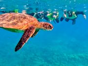 午前中で終了するツアーでしたので参加してみました。余り良い天候ではなく、少し肌寒い気温でしたが海に入ると思ったより寒く感じませんでした。シュノーケリングでは様々な色の魚がたくさんいて、カメさんにも2度程遭遇デキました。更に少し先の方にはイルカの群れがいてたりと短時間で色々と満足デキたツアーでした。次回、ハワイに来た時には友人達に勧めて一緒に参加したいです。