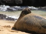 日の出前の5時40分集合はさすがに早いが、それでも現地では4組〜5組めの入場グループでした。有料OPでパラソル・チェアセットをレンタルしましたが、日差しが強いのでぜひお勧めします。午前中はヒトも比較的少なく楽しめます。10時頃に私たちのベース基地から10mくらいの場所に突然にモンクシールが砂浜にあがってきて休憩するという超ラッキーサプライズに出会えました。一緒の孫がハワイに来る前から会いたいと話していたので、偶然にも叶えてあげられてよかったです。モンクシールには15m以上距離を取らなければいけない法律があるので、我々のベース基地は速攻移動させられたのもいい思い出です。