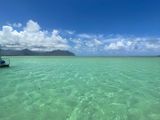 干潮で砂浜が見えるまでは行かなかったものの、天気が良くて最高の景色でした。スタッフさんが楽しんでるのが一番こちらがリラックスできる理由かもしれません。人気のいやむすびのスパム握りとお菓子、味噌汁やココア、マカダミアフレーバーコーヒー、コーラ、スプライト、ジンジャーエール、グァバ缶ジュース(ハワイに来た感じがして私はこれが好き)ドリトス、ポテチ、りんごなどが出されます。食べすぎるとシュノーケルで酔ったりするのでこれくらいの軽食でいいです。シュノーケルではウミガメが底に見えたり、結構でかい魚(鰤ぐらい?)がすぐ下を通り驚きますがいい経験です。海の中は宮古島とかの方が小さくて綺麗な魚が多いかもしれませんが、二色にきっぱり分かれるサンドバーの景色はここしかないので満足です。
