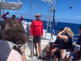 初めて参加しましたが、とてもいい体験でした。船はあまり揺れることがなかったのですが時折強い波に当たると水しぶきが飛んできますがそれも楽しい体験です。ほとんどの人がマイタイを美味しそうに飲んでいましたが、私たちはお酒に弱いのでソフトドリンクにしました。途中ダイヤモンドヘッドに虹がかかり、すてきな景色も見ることができて良い思い出となりました。