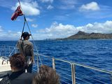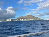 沖合から見るダイヤモンドヘッド、ワイキキビーチは最高です。また風も吹いてヨットとしての走りも最高、さらにイルカの並走、ウミガメにも遭遇し最高のクルージングでした。私がヨット経験者だと伝えるとキャプテンの計らいでウインチ作業、舵も握らせて貰い、最高の思い出になりました。キャプテン、クルーの皆さん有難うございました。初めて乗った同僚もヨットのクルージングに大満足しておりました。