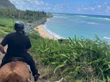 北海道で数回,2時間ほどの乗馬トレッキングをしたことがあり,ハワイの馬も同じ足や手綱での指示で,進む・止まる・曲がる,をしてくれます。万国共通。