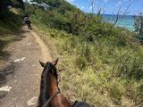 ホテルからの送迎付きプランだったので、大型バスで1時間ほどかけて現地まで行きました。乗馬中のインストラクターさんからの声掛けは英語ですが、事前に日本人のスタッフの方からの説明もあったので、英語がわからなくても大丈夫だと思います。参加者は日本人が多めで中国人、韓国人、欧米の方も結構いました。アクティビティの前後にそれぞれ1時間弱自由時間があったので、売店で軽食を買ったりのんびり散歩したりして過ごしました。ワイキキエリアとはまた違った雰囲気の中で自然を感じることができてとても良かったです。