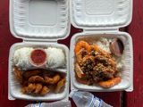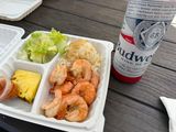 お昼のガーリックシュリンプは美味しいですがエビが大きくて量も多いです。チキンなどのメニューもあるのでお仲間と違うメニューを頼んでシェアするのがいいと思います。