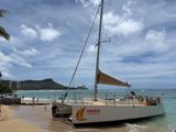 11:30にアウトリガーホテルのツアーデスクでチェックイン。ホロカイカタマラン号でハレクラニの前から出航。