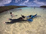 シュノーケリング:想像以上に深いところを泳ぎました。もちろん、足はつきませんが、泳げない人は(人数が少なかったためか)ガイドさんが付いて泳いでいました。