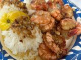 ガーリックシュリンプは一皿でもまぁまぁ量があったのでシェア。エビたっぷりでとっても美味しいです。マツモトシェイブアイスはフレーバーがたっっくさんで目移りしてしまって3つ選ぶのが大変です。