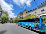 名前を伝えてバスに乗ったら、指定の席に座ります。バスはこのツアー特注の新車とのこと!乗り心地も気持ちよい、高級感あるシートでした。