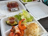 昼食は、ノースショア名物のガーリックシュリンプ。数あるシュリンプトラックの中でも人気の「デニーズシュリンプ」に案内されました。プリプリのエビにガーリックバターが絡み、ご飯との相性も抜群。これを食べるだけでもノースショアに来る価値があると思えるほど美味しかったです。