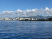 スターオブホノルル号は、ワイキキビーチ沖に針路をとり、最初はホエールを探していましたが、なかなか見つからず、心配になっていたところ、突然のホエールのジャンプで、大感激。その後は、船がホエールに囲まれているのかのように、右舷左舷でジャンプ。  また、洋上から見るワイキキビーチ・ホテル群、ダイヤモンドヘッドの景色も最高。 出航前のパイナップルバナナブレッドも美味しい。
