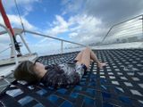 船が動き出したらすぐに1番上のデッキに移動するのがおすすめ!日差しが強いので帽子、サングラス必須ですね。