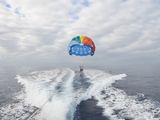 順番に道具を着用して7分ほどのパラセーリングがスタート。同乗した向かいのグループに写真を撮りましょうかと声をかけるとみんなで撮りあいっこする雰囲気に😙全員日本人だったからかな?笑