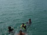 そして、イルカの泳ぐ方向に先回りをしてイルカと泳げるタイミングで船から飛び込みます。