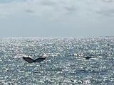 突然のジャンプは見逃してしまいましたが、運良く目撃できた方達は興奮していました。その後に親子らしき2頭が、水面近くで潮を吹いたり尾を見せたりしてくれました。