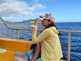 今回は運よく2頭の親子?クジラを見ることができました!やはり見られるかはその日によるそうなので運次第ではありますがクジラを追って沖にどんどんでてくださり潮吹きや尾びれ、ジャンプする姿まで見ることができました。CREWさん達も気さくにお話してくださるので移動中も楽しかったです。