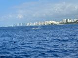 ワイキキ沖の気軽で、格安ツアーなのでダメ元の覚悟で参加しました。朝イチ7:30のツアーでしたが時間になっても主催者のPink Sails Waikiki のスタッフは現れず、看板ひとつ出していないので不安でしたが、相手はアメリカ人、ただの遅刻でした。このツアーは全て英語のみの案内ですが、クジラを観たい気持ちに言葉の壁は感じませんでした。乗客は半分がアメリカ人残りがアジアやインド系、日本人は3組でした。肝心のクジラは10回ほど姿を見せてくれましたが、何処に顔を出すか?は運次第。親子連れが多く現れてました。船は双胴船で揺れが少ないですが、クジラに近寄れるのは小さなボートのようです。したがって双眼鏡が必需品と云えます。写真は超望遠レンズで撮影しました。スマホでは無理だと思います。