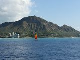 船上から見るダイヤモンドヘッドをバックに写真を撮るとすごくイイ!