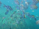 遠浅の海で、足が付いた状態でも海中にいる綺麗なお魚が見えて怖くなくて最高でした。