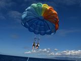 クルーは2人、乗客は10名でした。乗船後すぐにライフジャケット、ベルト着用、順番に飛びます。飛ぶまではドキドキしましたが、上空に上がると風の音が心地良く、空と海の青さが綺麗で海からダイヤモンドヘッド、ワイキキの景色を海側から見ることが出来素晴らしかったです。
