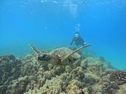 ウミガメと一緒にダイビング