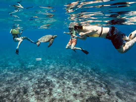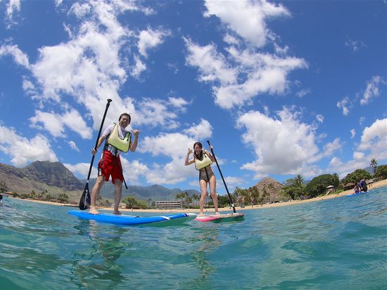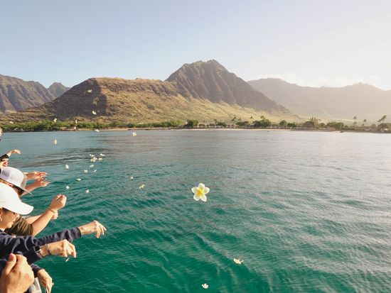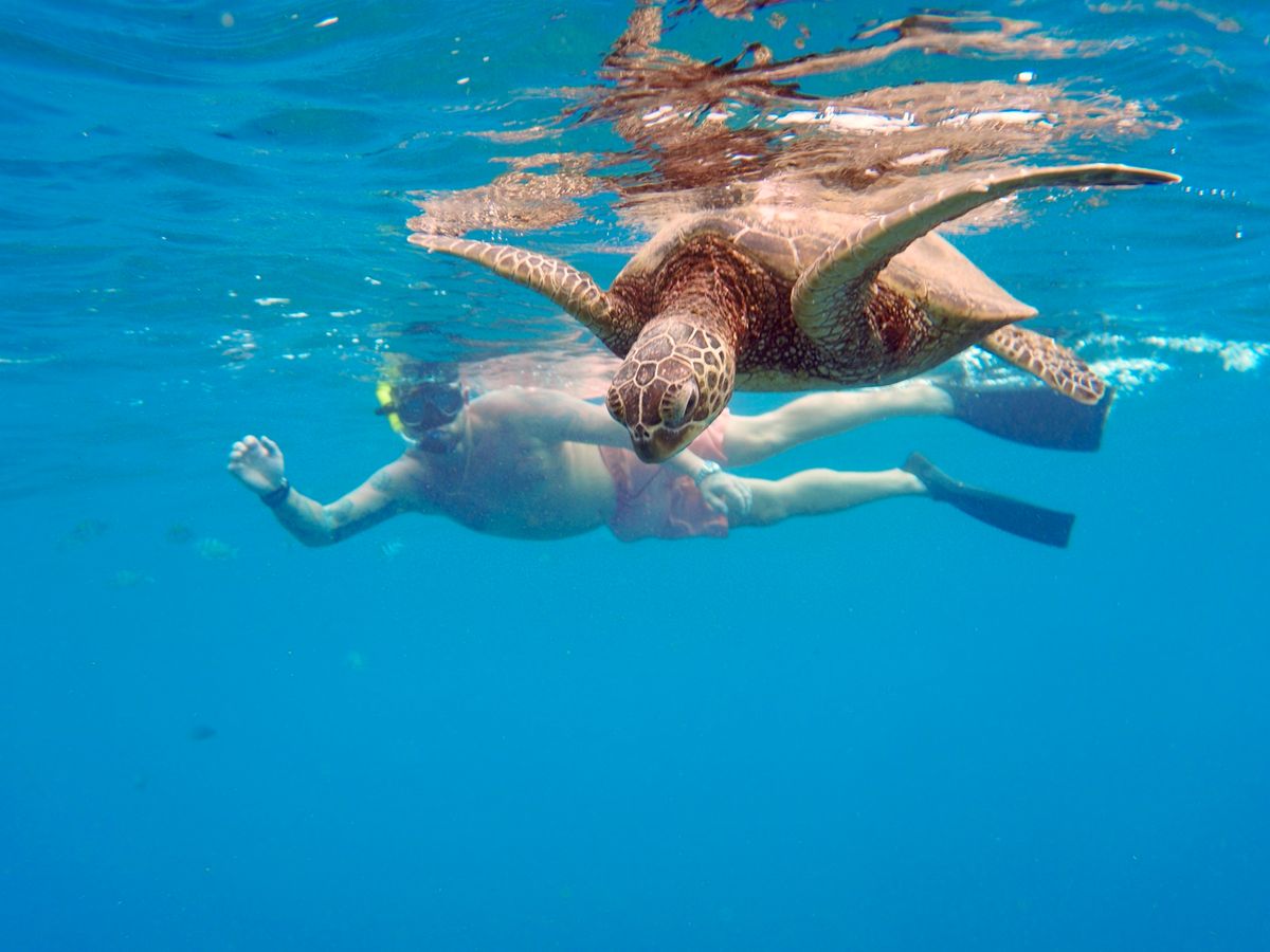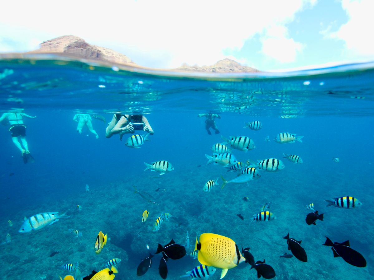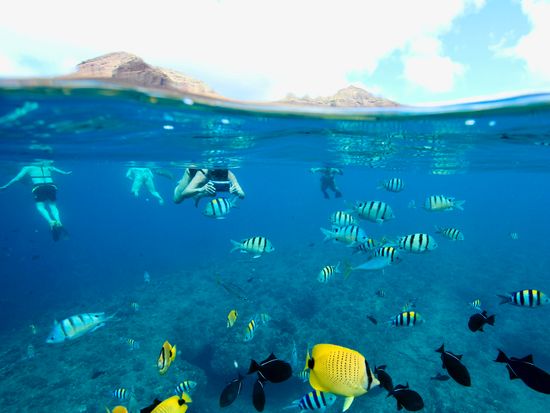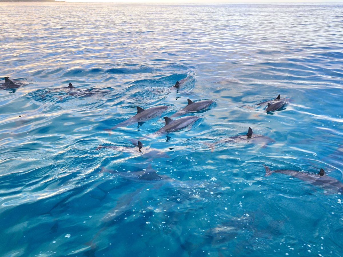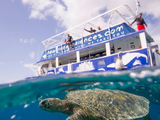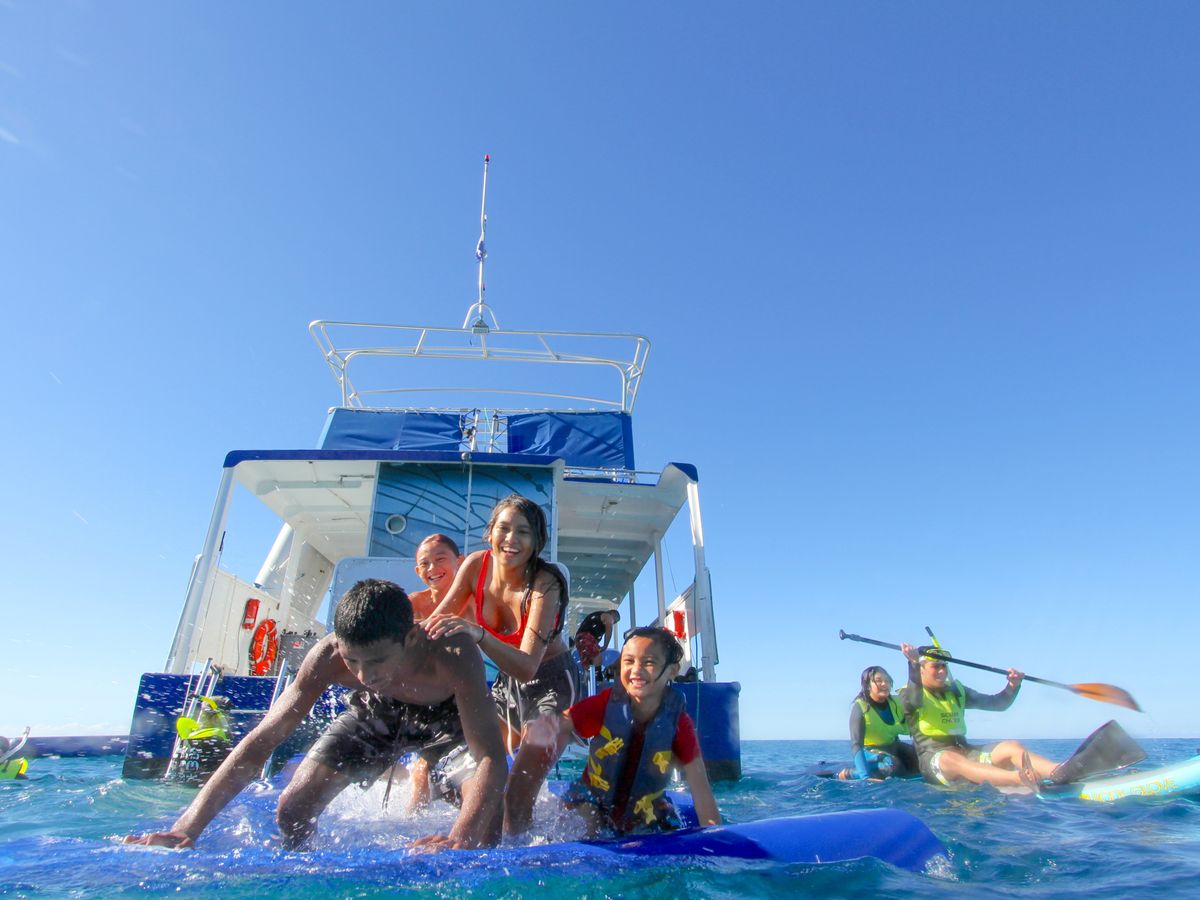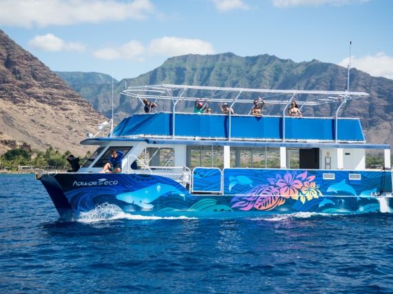 5歳のお子様から楽しめるドルフィンスイム、船上からイルカを眺めるドルフィンウォッチツアーから選択可能!ドルフィンスイムでは野生のイルカと泳ぐ夢のようなひとときを体験できます。広くて新しい快適な高速カタマラン船で、大自然の残る西オアフからイルカを探しに大海原をクルージング。熱帯魚やウミガメを間近で見られるシュノーケリングも。さらには全長6.4mの滑り台やSUPなど、人気のマリンアクティビティも楽しめる盛りだくさんのツアーです。嬉しいランチ付き。